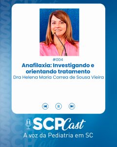 Neste 4º episódio do SCP Cast, a convidada é a Dra Helena Maria Corrêa de Sousa Vieira, pediatra, alergista e imunologista, presidente do Departamento de Alergia e Imunologia da Sociedade Catarinense de Pediatria e preceptora da residência em Alergia e Imunologia do Hospital Infantil Joana de Gusmão. O tema abordado é a anafilaxia, uma reação alérgica grave, de início súbito, potencialmente fatal e ainda subdiagnosticada na prática pediátrica.